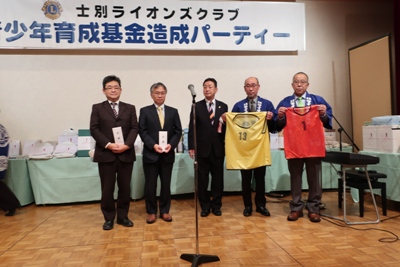 青少年育成基金造成パーティーを開催し、市内小学校2校へビブス(体育等授業用)を贈呈いたしました。